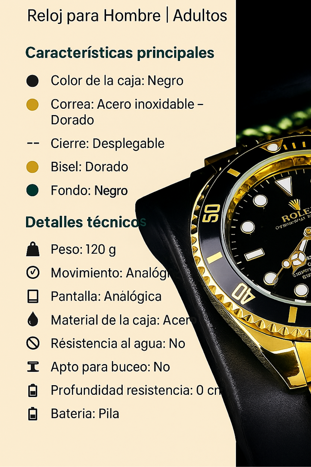 🔹 Caja de acero inoxidable: durabilidad y brillo que se mantienen en el tiempo.